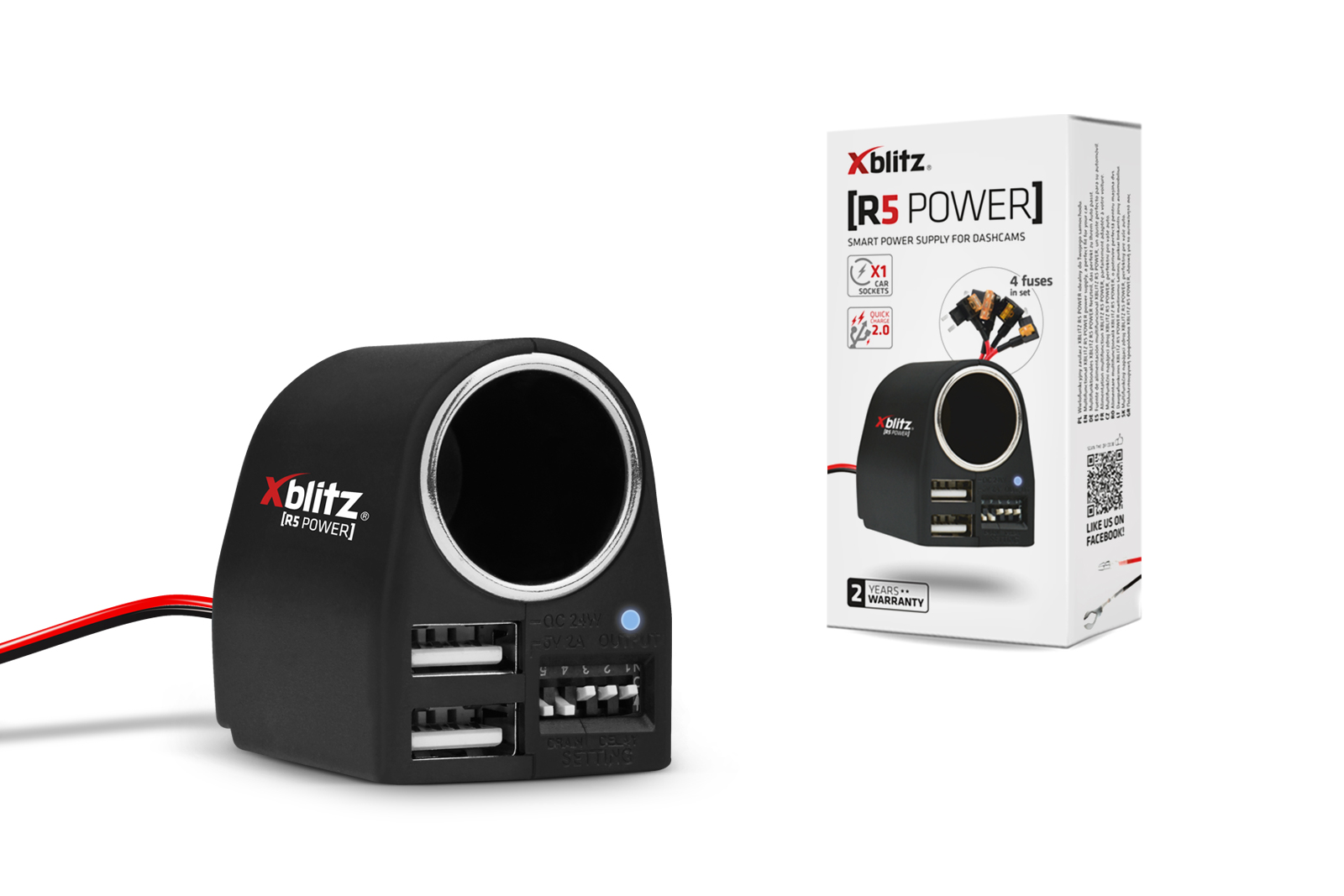 Xblitz R5 POWER to zasilacz samochodowy przeznaczony do użytku z kamerami samochodowymi oraz innymi urządzeniami. Ten prosty rozdzielacz podłącza twoje urządzenia bezpośrednio do akumulatora twojego pojazdu, dzięki czemu mają one dostęp do zasilania nawet, gdy auto stoi zaparkowane z wyłączonym silnikiem. Jest to bardzo przydatne, gdy chcemy skorzystać z funkcji trybu parkingowego kamery – większość wideorejestratorów posiada wbudowane baterie o bardzo niskiej pojemności, przez co funkcja ta nie jest tak niezawodna, jak być powinna, zwłaszcza jeśli pozostawisz pojazd zaparkowany na długo. Podobnie wygląda sytuacja z innymi funkcjami kamer samochodowych wykorzystywanych w trakcie parkowania, takich jak wykrycie ruchu.