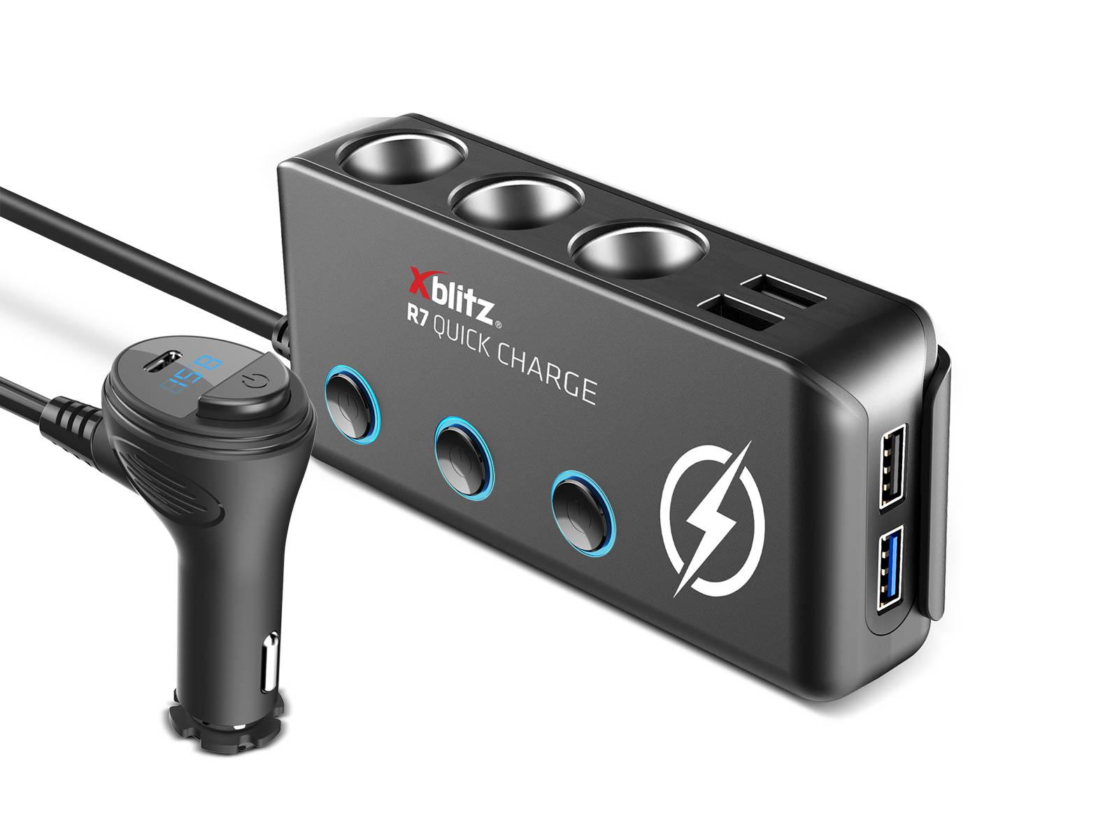 Xblitz R7 Quick Charge daje ci dostęp do aż trzech gniazd zapalniczki oraz czterech portów USB, umożliwiając ci zasilanie wielu urządzeń takich jak wideorejestratory lub nawigacje samochodowe. Wtyczka rozdzielacza posiada panel LED, na którym wyświetlone jest napięcie panujące w akumulatorze Twojego samochodu, oraz dodatkowy port USB typu C.