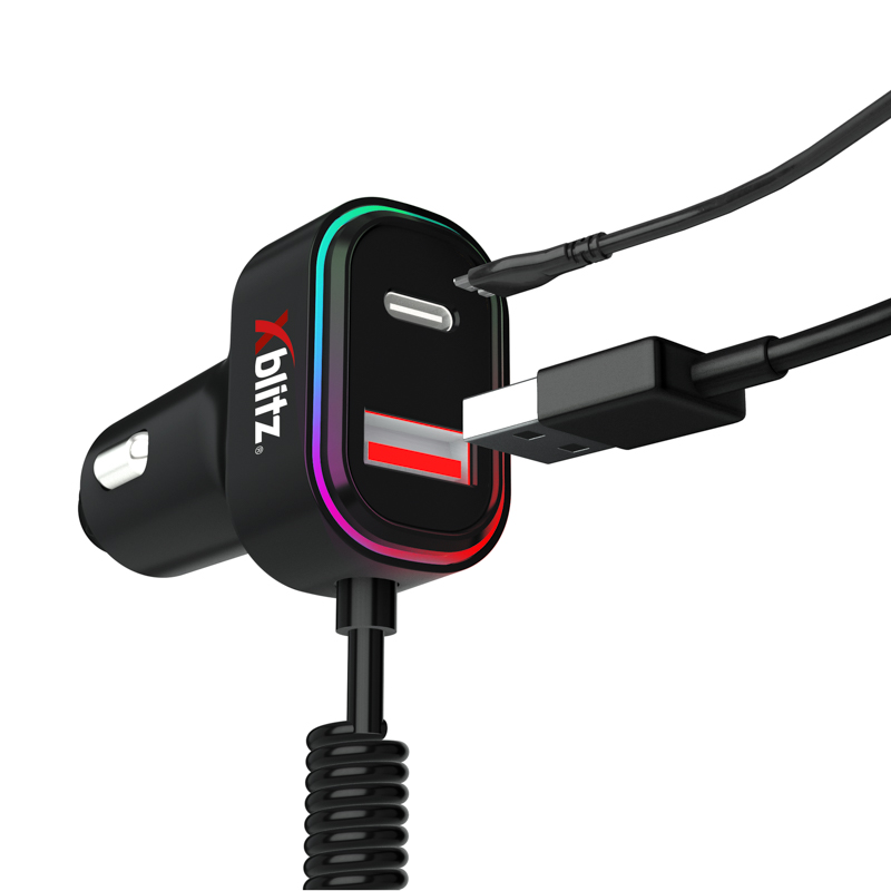 Dwa porty USB w Xblitz X750 umożliwiają jednoczesne zasilanie dwóch różnych urządzeń. Port USB-A obsługuje Quick Charge 3.0, zapewniając ładowanie do 18W dla nowoczesnych modeli, podczas gdy port USB-C wspiera technologię PD 30W idealną do szybkiego ładowania sprzętów o wyższych wymaganiach. To doskonałe rozwiązanie dla kierowców, którzy podróżują z wieloma gadżetami!