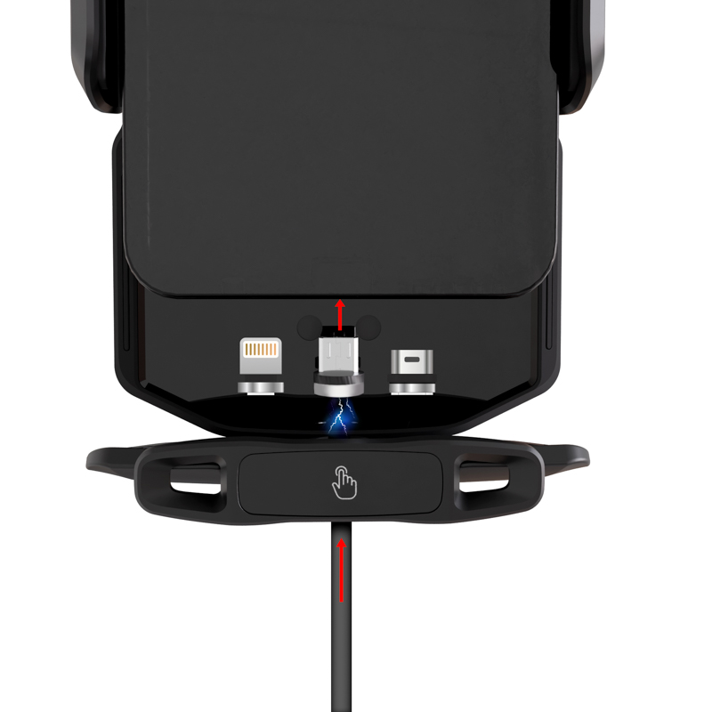 Xblitz FX2 Exclusive umożliwia ładowanie smartfona na dwa sposoby – bezprzewodowo i przewodowo. W przypadku ładowania indukcyjnego wystarczy umieścić telefon w ramionach uchwytu, a proces rozpocznie się automatycznie. Jeśli preferujesz ładowanie przewodowe, wystarczy podpiąć jedną z trzech magnetycznych końcówek dołączonych do zestawu (USB-C, Lightning lub Micro-USB), dopasowaną do Twojego smartfona.