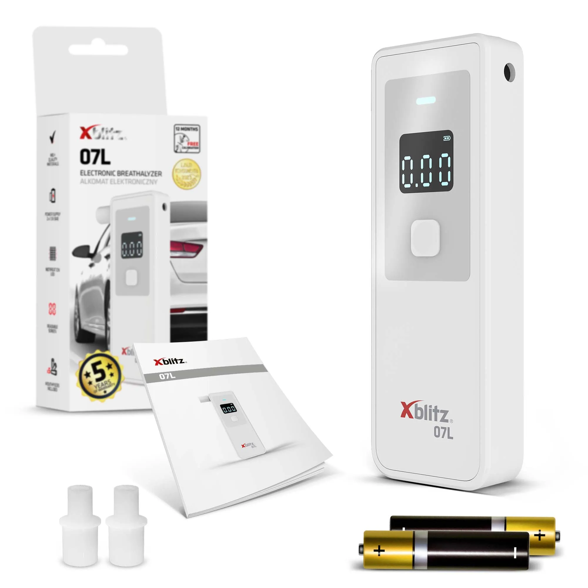 Zadbaj o bezpieczeństwo swoje i innych. Alkomat Xblitz 07L z czytelnym wyświetlaczem LCD błyskawicznie pokazuje poziom alkoholu w wydychanym powietrzu. Nawet po symbolicznej ilości alkoholu – sprawdź, zanim wsiądziesz za kierownicę. Bądź odpowiedzialny. Zawsze miej Xblitz 07L pod ręką.