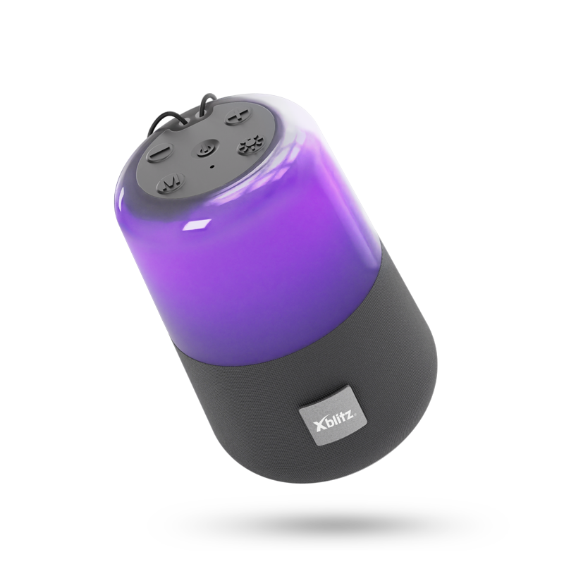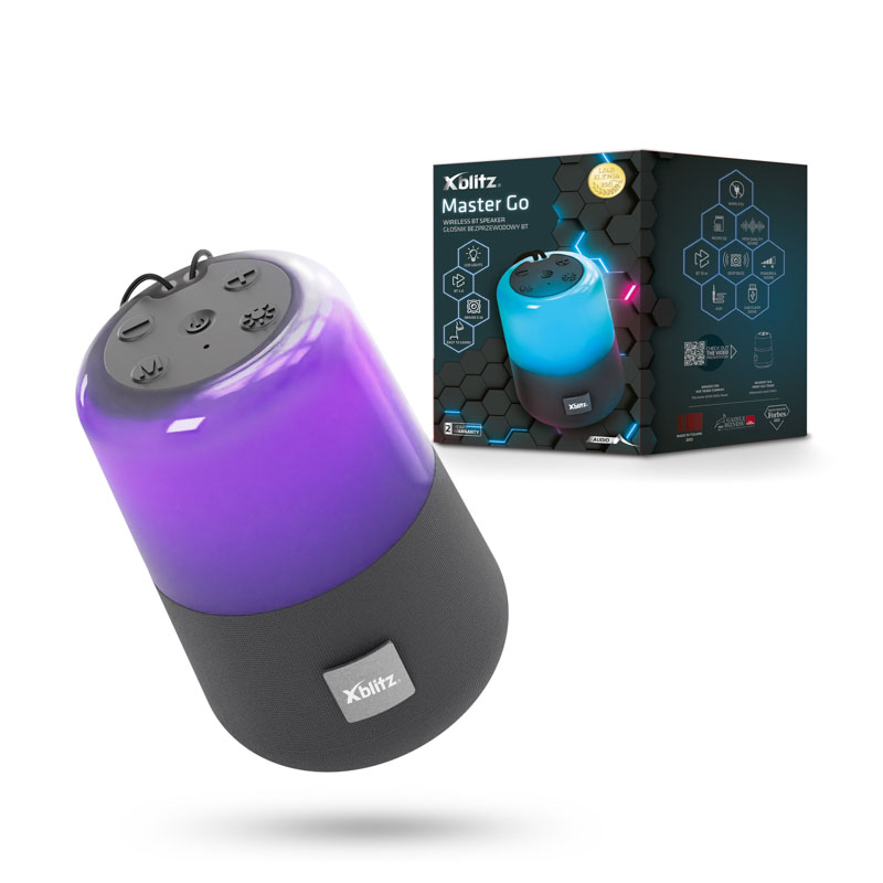 Xblitz Master Go został zaprojektowany aby cieszyć nie tylko ucho ale także wzrok swoich użytkowników. Jego unikalny design składa się m.in. z materiałowej powierzni, nad którą rozświetla się błysk kolorowej lampy LED. Na spodzie głośnika znaduje się elegancka, stalowa membrana i antypoślizgowe, silikonowe stópki.