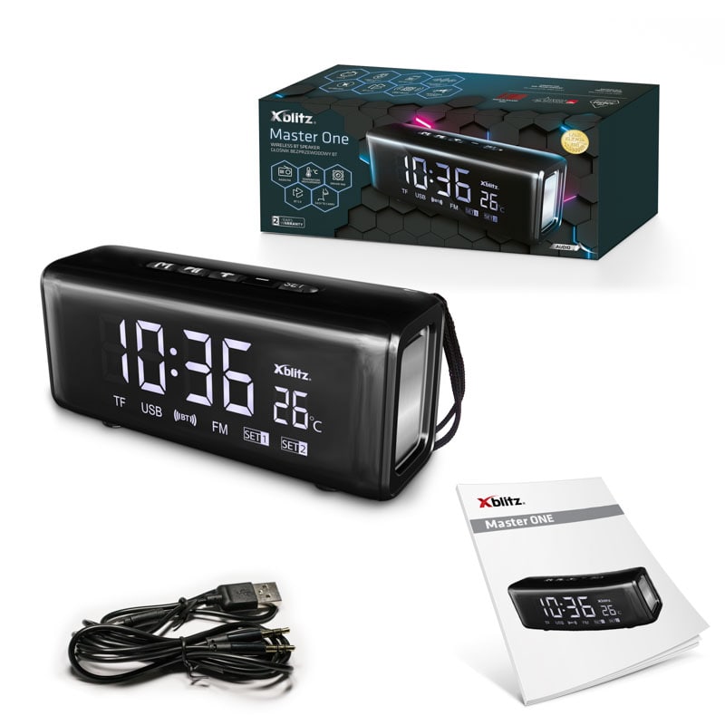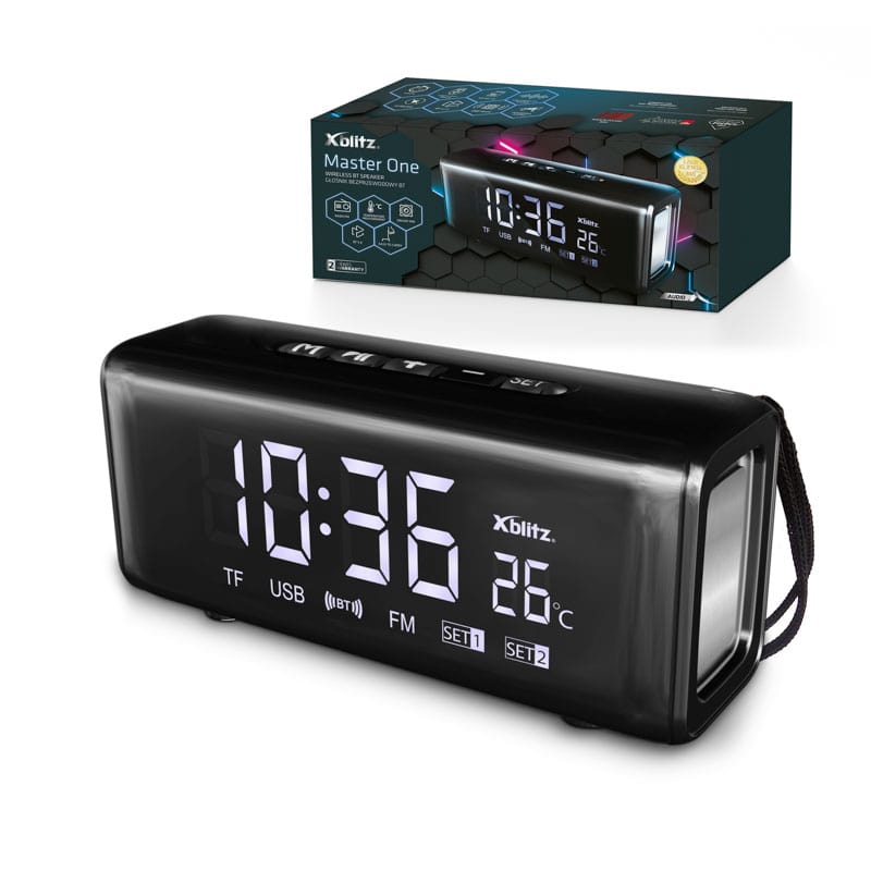 To co wyróżnia Xblitz Master One to wyświetlacz. Głośnik bezprzewodowy posiada funkcję zegara, a także pomiaru temperatury. Teraz możesz mieć w zasięgu wzroku najważniejsze informacje!