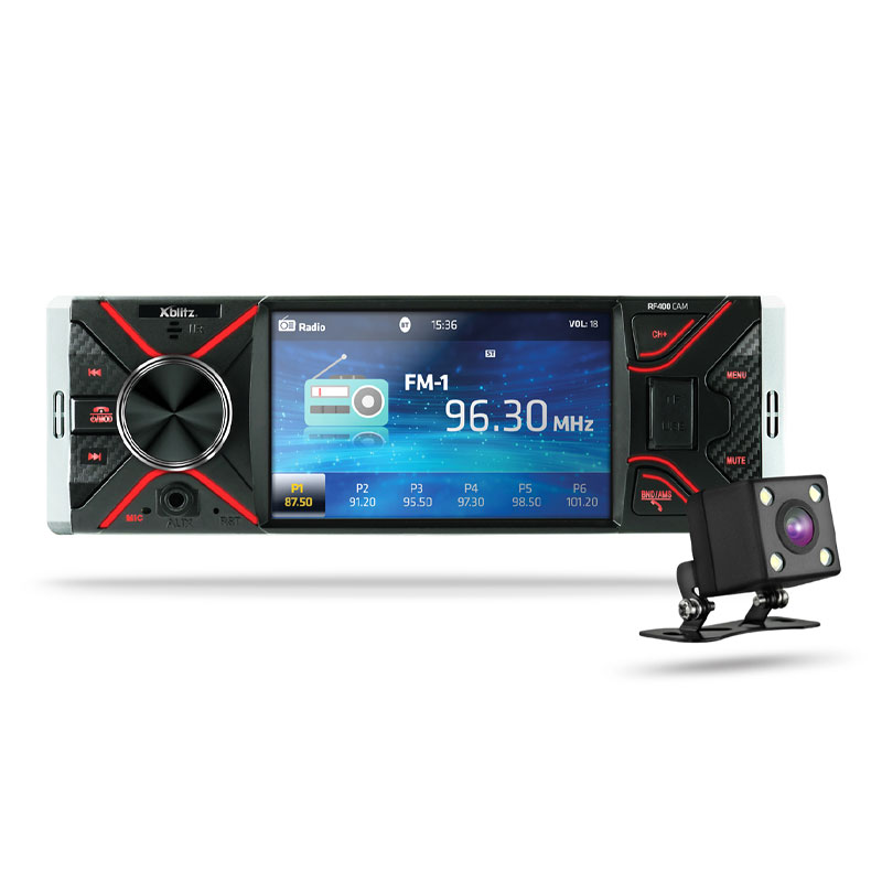 Xblitz RF400 CAM posiada w zestawie kamerę cofania, którą można zamontować zarówno wewnątrz, jak i na zewnątrz pojazdu. Obraz z kamery pojawia się na wyświetlaczu radia. Dzięki niej, każde parkowanie samochodu to czysta przyjemność.